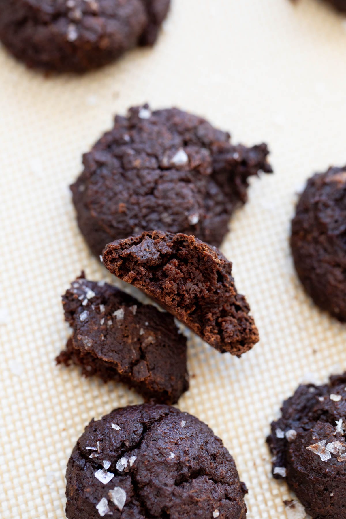 Richly chocolaty cookies that are soft and pillowy, with a texture that’s soft without being cakey. A sprinkling of sea salt is salty-sweet perfection! And I promise, there’s no cottage cheese or protein powder in sight!