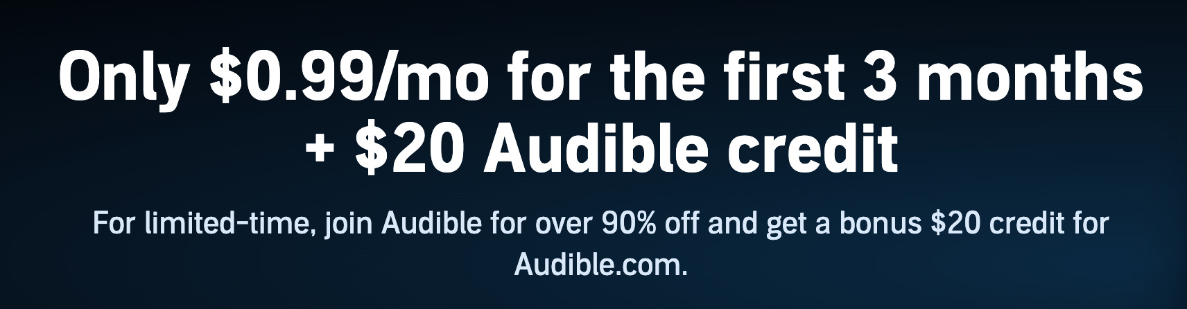 There’s a holiday deal until December 1 that all NEW customers get Audible for .99 cents a month for 3 months and then a $20 credit on your statement. This is a 90% savings and if you’re not already an audible member and you like books, this is THE deal!
