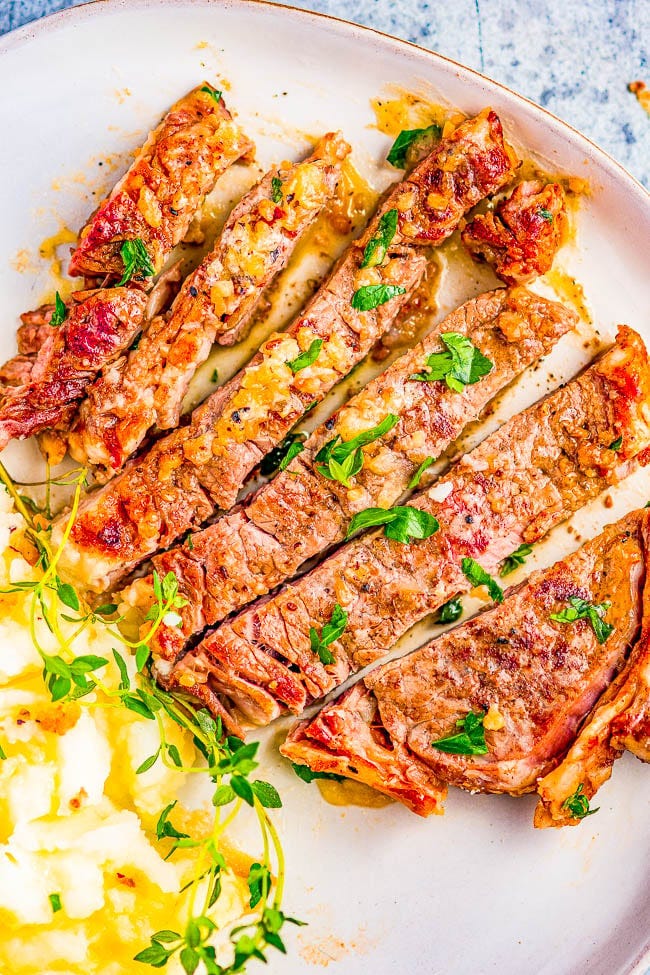 Juicy Steak Bites 🥩 are tossed in the most flavorful garlic butter sauce that I kicked up a notch with red pepper flakes, paprika, Dijon, fresh herbs and more. It’s also known as cowboy butter and SO flavorful! This restaurant-quality and protein-packed steak dinner recipe is easy, ready in 15 minutes, and perfect for busy weeknights, entertaining, or date night at home!