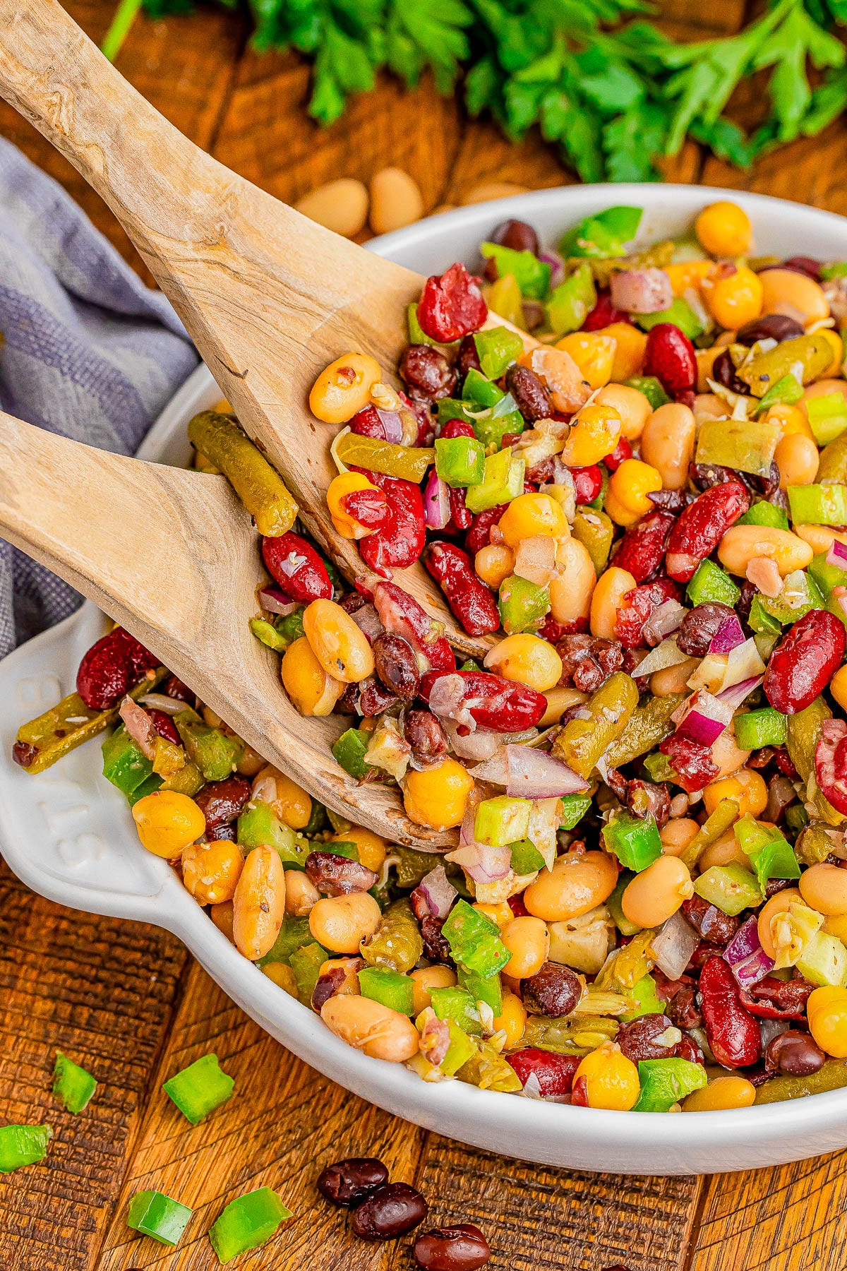 Easy 5 Bean Salad 🫘🙌🏻🥗The BEST bean salad with 5 types of beans, artichoke hearts, red onions, veggies, and takes just 10 MINUTES to prepare! Everything is tossed in a tangy, savory yet slightly sweet vinaigrette that ties everything together perfectly. Serve this as a protein-packed side dish for dinner, at picnics and potlucks, or as a stand-alone healthy lunch option. The recipe is EXTREMELY flexible, too!