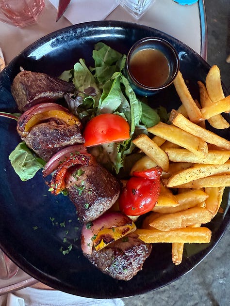 It is entirely possible to have BAD food in Paris, which is largely preventable! There are sidewalk cafes that are consistently crowded, and you’ll see them as you walk by. Chances are the food is better than others, but not a guarantee. Some fill up as watering holes and the food is very mediocre. Read the menus before you enter. And don’t get to the point you’re dying of hunger before figuring our your next meal. Been there, it’s the worst. Most cafes have very similar items on every menu. Escargot, grilled chicken Caesar salad, steak frites, Croque Madame, a variety of cheese, and creme brulee, to name some standard fare. And while it’s fine for the second or even third time in a few days, it gets old. Back to do your research if you’re picky, your family is picky, you’re a foodie, you need variety, etc. - which is all of us! Here we are at Sip on Rue du Babylone in the 6th in Saint Germain in the first photo and then food from a smattering of random cafes throughout Paris below. And…you may likely get sick of French food and want Indian or Asian - we loved Roof for dinner with an Asian-inspired menu (reservations required) or Mexican. Our fave fast-casual Mexican is BocaMexa (no reservations necessary).